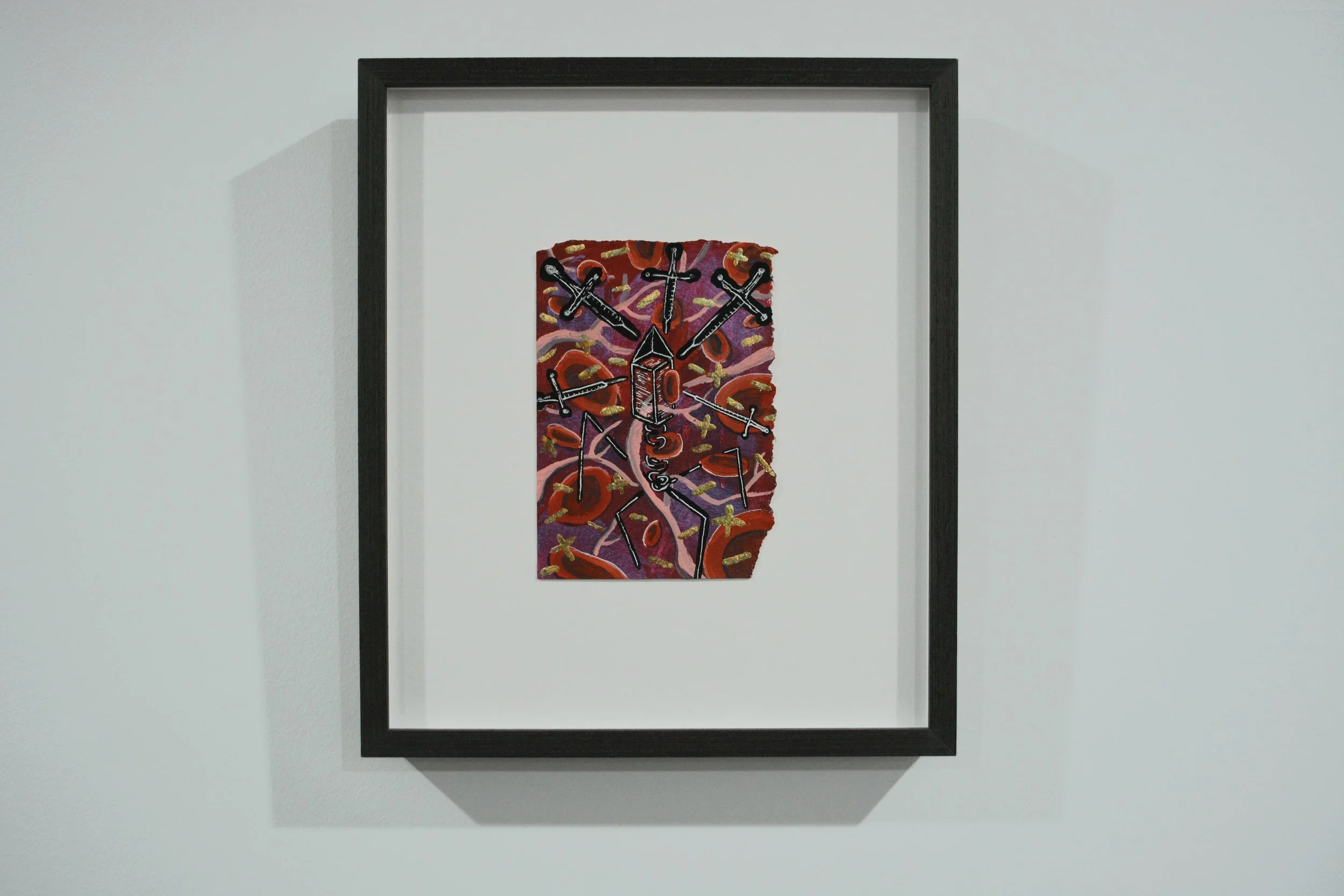 Store › The Fight Image 1 of 1 The Fight $250.00 acrylic, metal leaf and pen on paper33cm x 28cm (Framed) Add To Cart Added! acrylic, metal leaf and pen on paper33cm x 28cm (Framed)